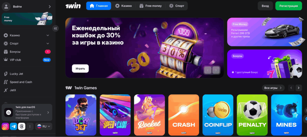 Главная страница продукта 1win