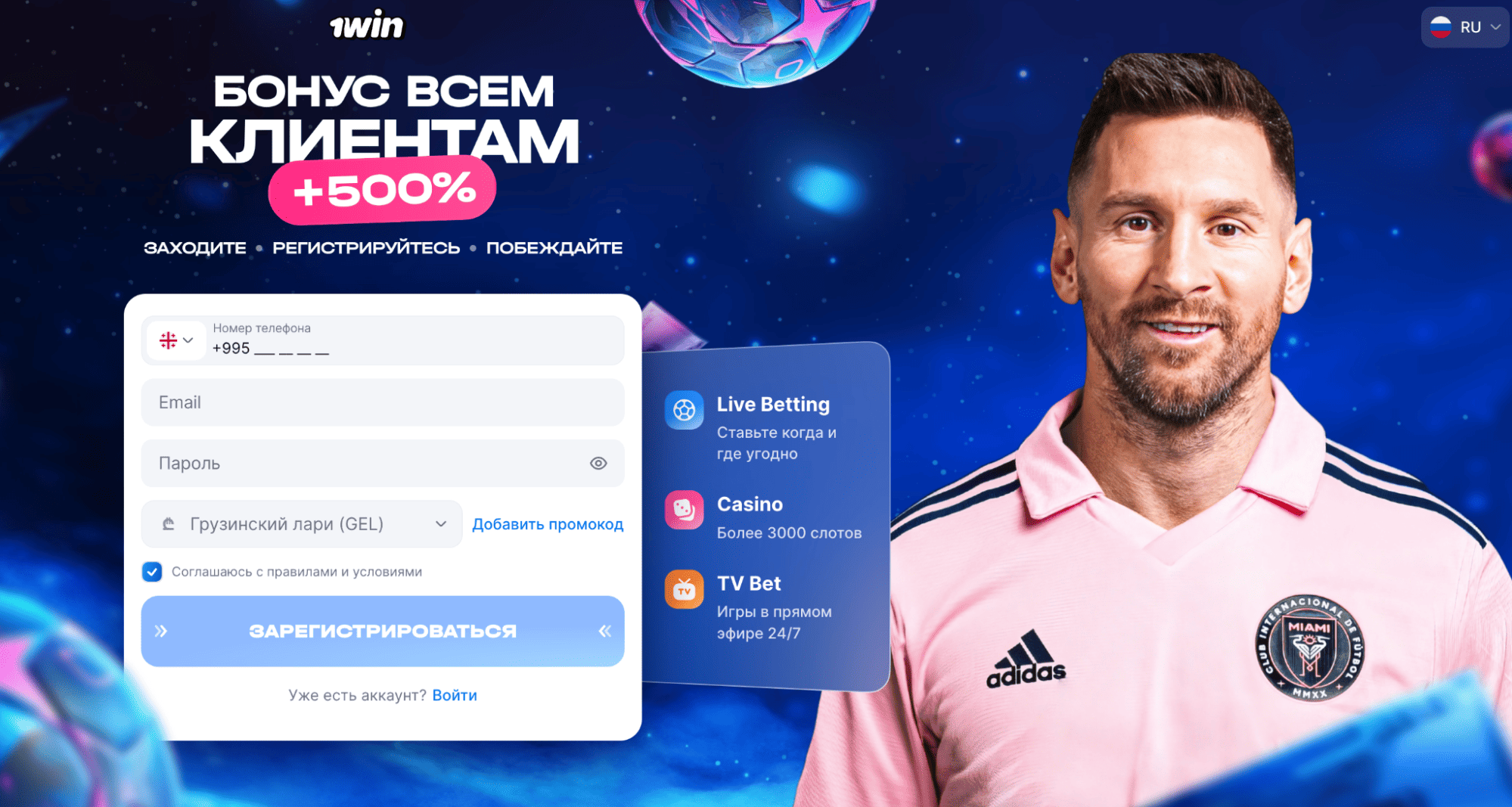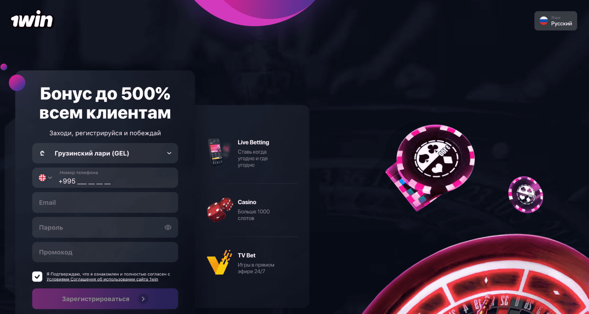 Главная страница продукта 1win