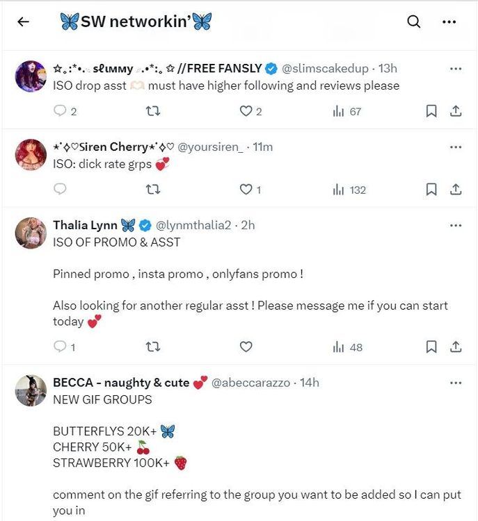 - Twitter (X) сохраняет статус главной открытой платформы для NSFW-продвижения. Авторы создают тизер-контент, используют короткие ролики и интеграции с подписочными платформами. В 2025 году X добавил инструменты промо-твитов с ГЕО-таргетингом, что сделало возможным покупку трафика без посредников.