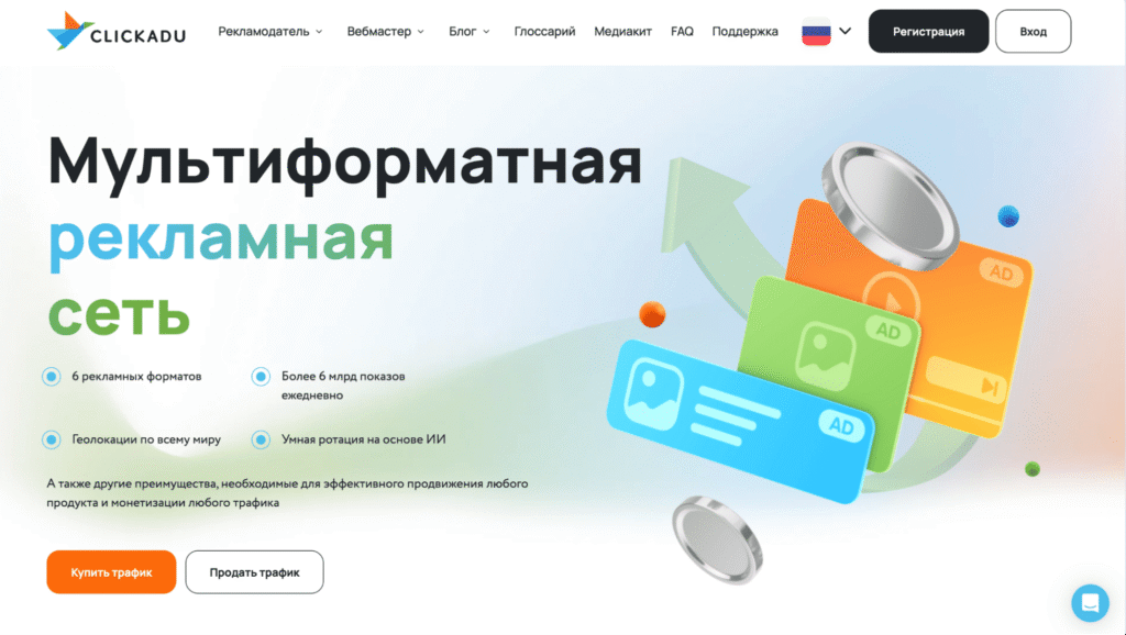 Мультиформатная платформа Clickadu ежедневно генерирует свыше 6 млрд показов и строит работу на базе алгоритмов умной ротации. Технология Smart Rotation использует искусственный интеллект для автоматического ранжирования креативов, предлагая пользователю объявление с наивысшей вероятностью клика. Это исключает необходимость ручного A/B-тестирования десятков вариантов и стабилизирует CTR на дистанции.