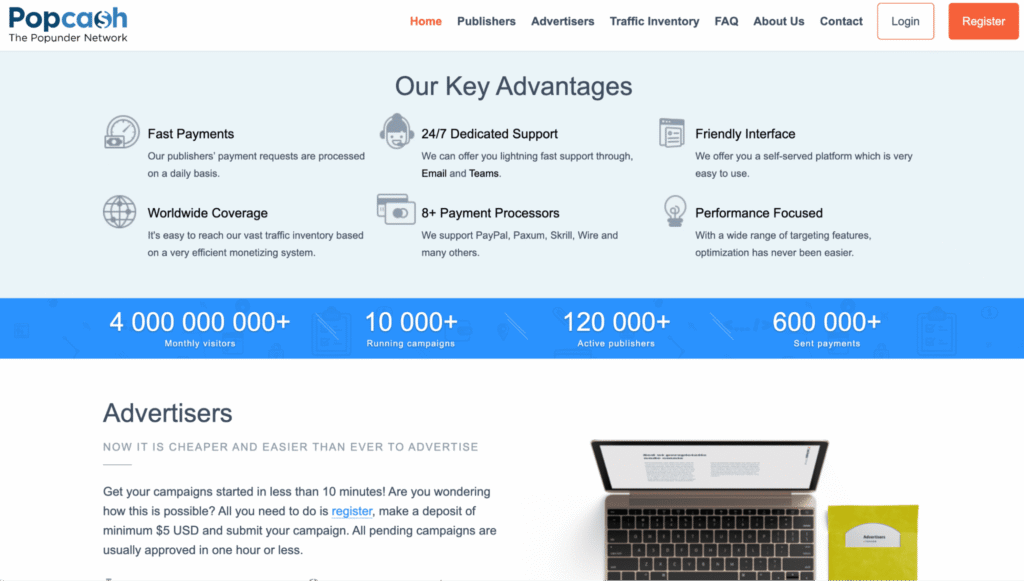 PopCash на протяжении многих лет удерживает статус одной из самых доступных и простых в освоении платформ для работы с попандер-трафиком.