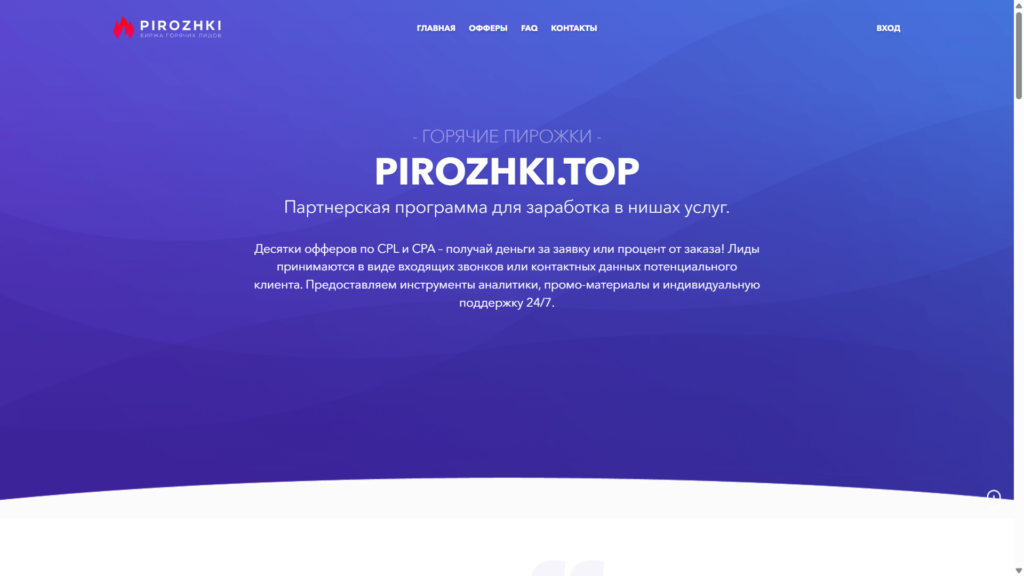Партнерская программа «Горячие пирожки» (PIROZHKI.TOP) предлагает большой выбор офферов по ремонту техники, уборке, эвакуации и ремонту автомобилей, установке и замене окон и дверей.