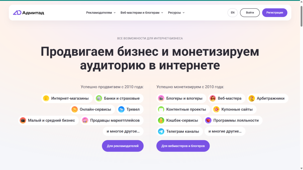 Admitad — мультивертикальная сеть, которая предлагает в том числе офферы от компаний, который оказывают клининговые и другие бытовые услуги.