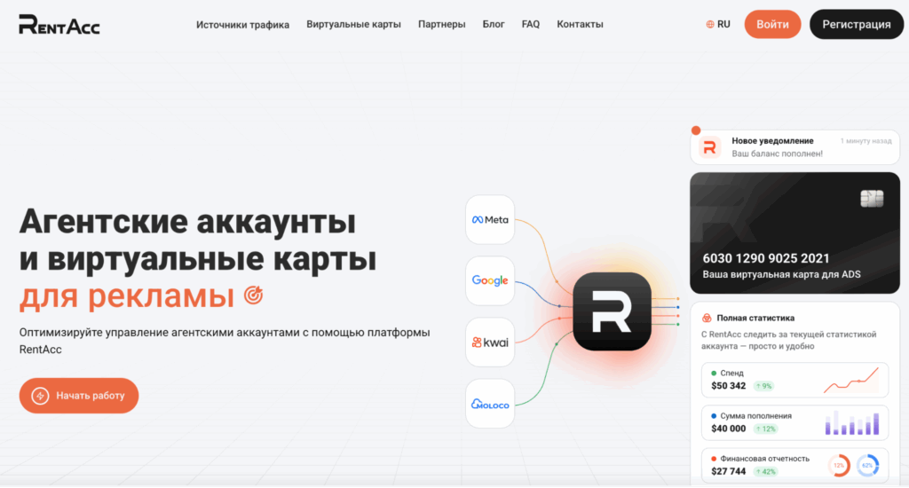 RentAcc.agency — платформа для работы с агентскими аккаунтами и виртуальными картами с удобной панелью управления. Цена зависит от выбранного источника и условий.