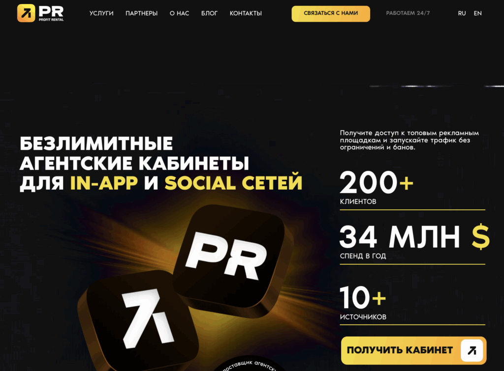 Главная страница сервиса аренды агентских аккаунтов Profit Rental