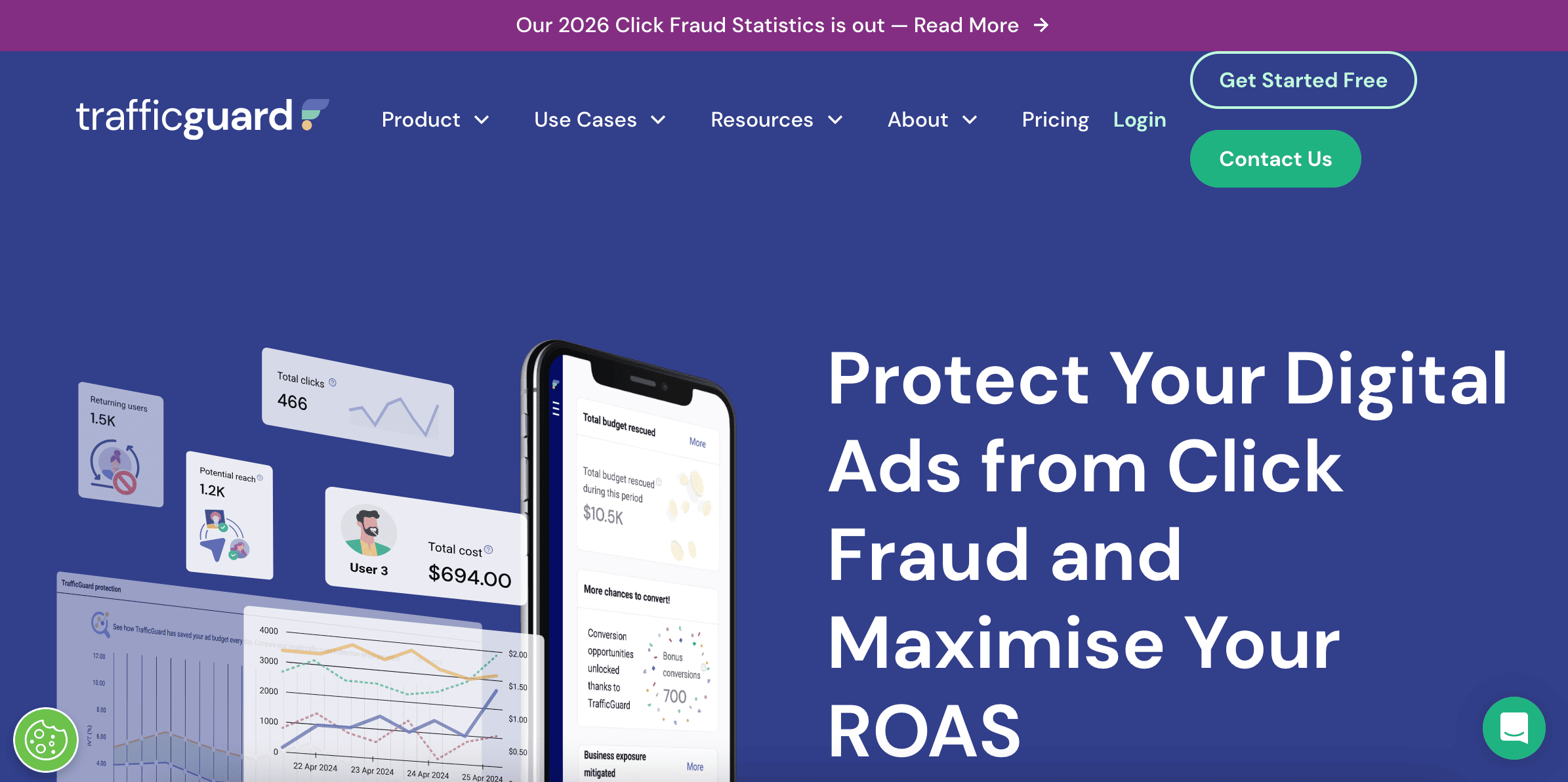 Антифрод Trafficguard подходит для защиты трафика на веб-сайтах и мобильных приложениях. Для обнаружения недействительного трафика программа анализирует каждое взаимодействие в режиме реального времени, блокируя мошеннические клики и конверсии.