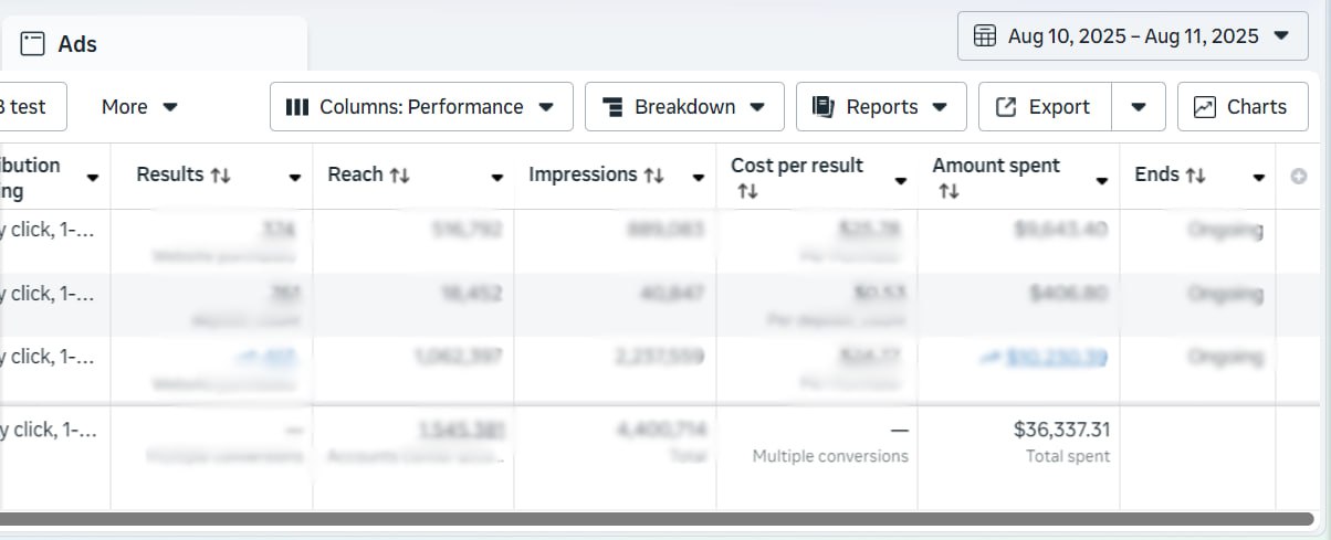 Второй момент — качество аккаунтов. Мы берем в основном Facebook BM1000 и BM2500. Лимиты держатся стабильно, плюс есть возможность работать в разных валютах и часовых поясах, что важно для мульти-ГЕО. Фанки и пиксели делают за нас, ребята из поддержки реально снимают рутину, чтобы мы могли сосредоточиться на трафике и связках.