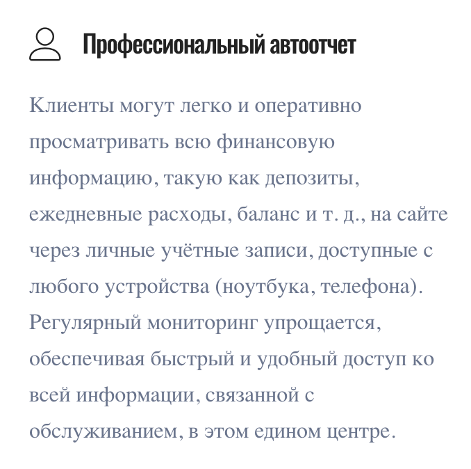 | Для них важны высокие лимиты, гибкость по валютам и таймзонам, а также оперативная поддержка, которая поможет решить любой вопрос. | |