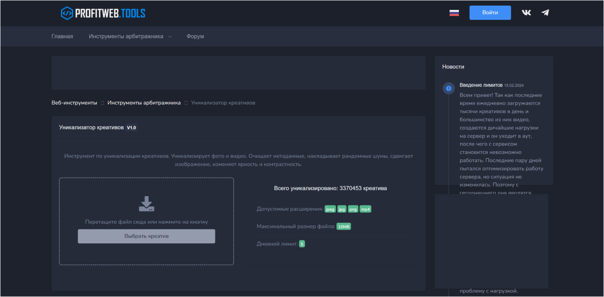 Формат и оплата: вариация сервиса ProfitWeb с упором на онлайн‑уникализацию креативов через браузер; обычно дает ограниченное количество бесплатных обработок в день и платные пакеты для больших объемов.