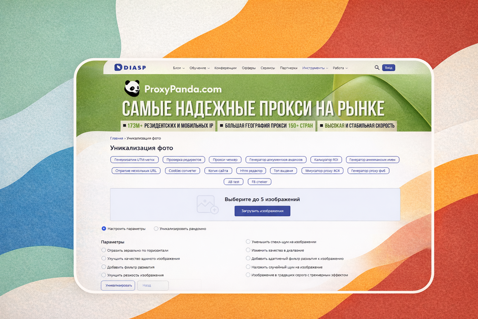| DiaspPartners уникализатор фото | Фото | Лайт | Быстрая уника баннеров и товарок | Соло, небольшие команды | Бесплатно, расширения через партнерку |