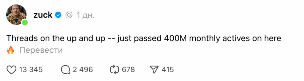 В Threads 400 млн MAU