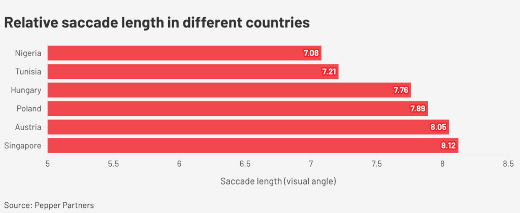 В Нигерии и Тунисе саккады короче, чем в Польше, Венгрии, Австрии и Сингапуре (источник — Pepper Partners)