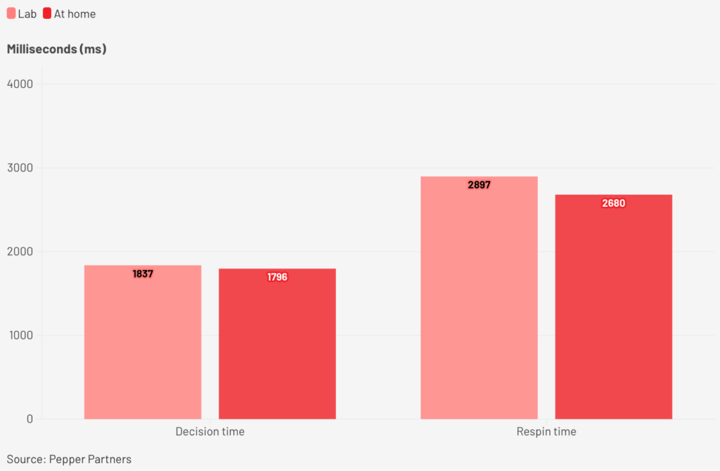 Время реакции в слотах в лаборатории и дома отличаются незначительно (источник — Pepper Partners)