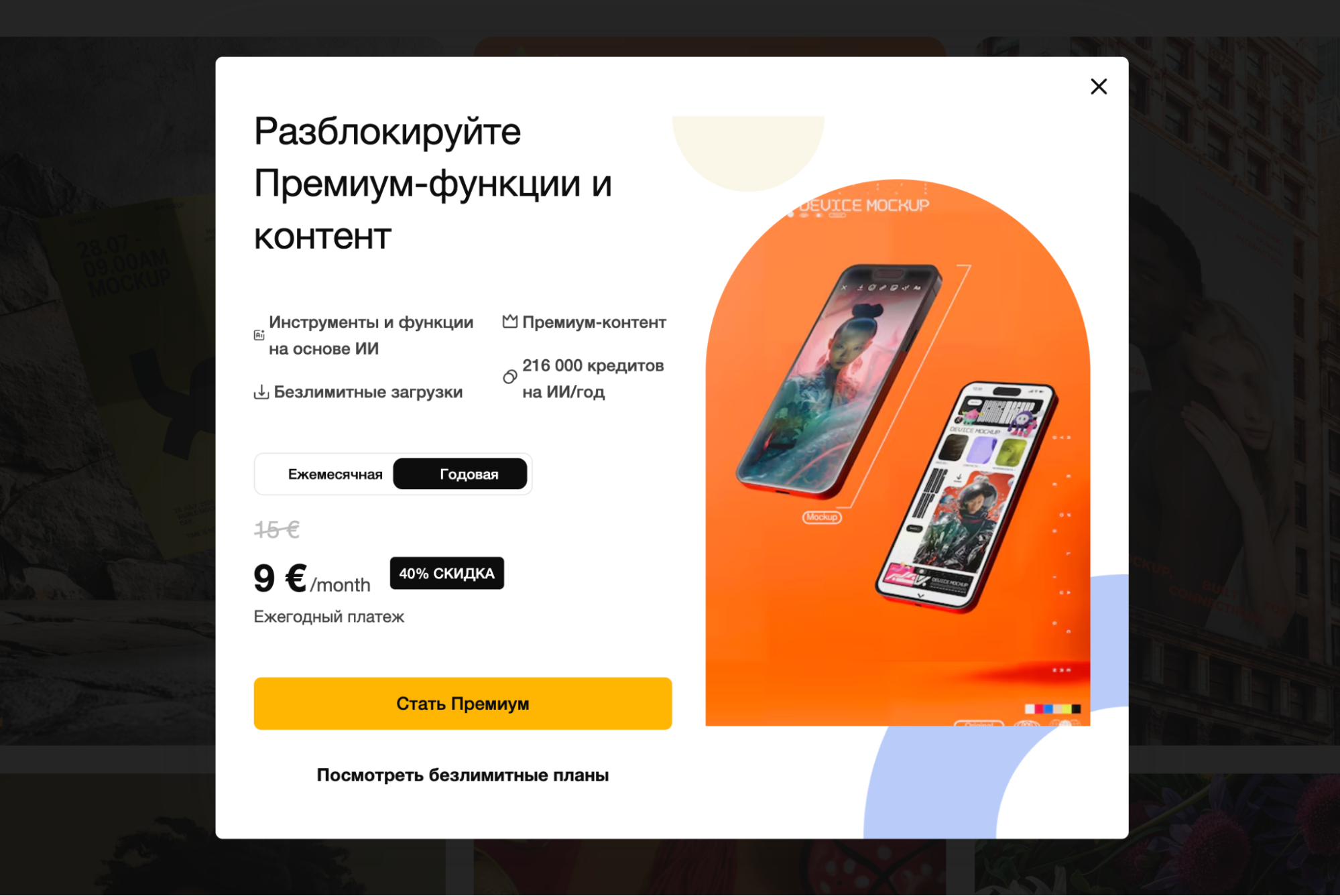 - Freepik Premium — €15 / месяц (18 000 ИИ-кредитов и доступ к премиум-ресурсам библиотеки);