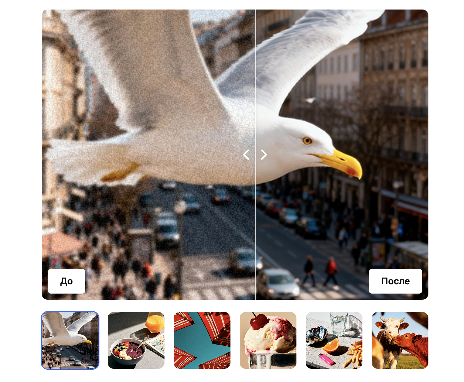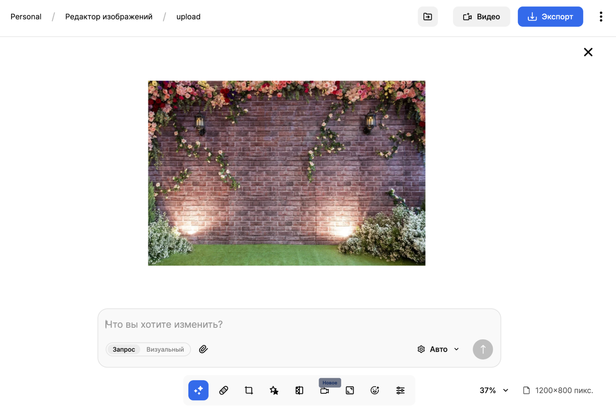 ИИ-редактирование — один из ключевых компонентов платформы, который позволяет заменить фон, удалить лишние объекты, улучшить резкость, восстановить детали и адаптировать изображение под нужный формат. Инструмент полезен, если найденный сток визуально подходит, но требует коррекции под задачу конкретной рекламной кампании. Модель выравнивает детали, повышает четкость и убирает шумы.