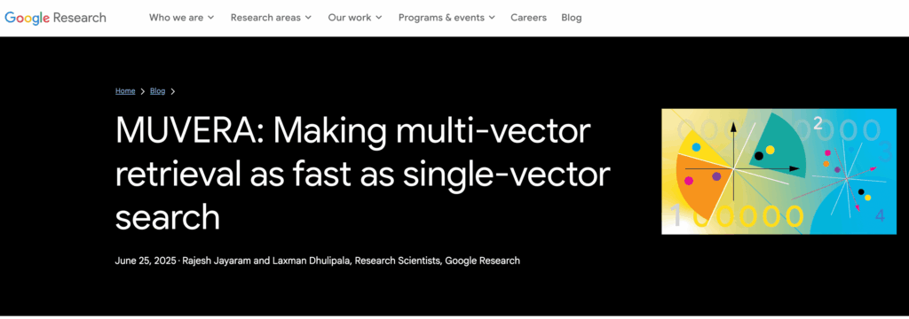 MUVERA (Multi-Vector Retrieval via Fixed Dimensional Encoding) — это новая технология Google, которая полностью меняет подход к поиску информации. Если раньше поисковая система сопоставляла запрос пользователя и страницу в виде одного вектора (одного набора смыслов), то теперь Google использует несколько векторов одновременно.