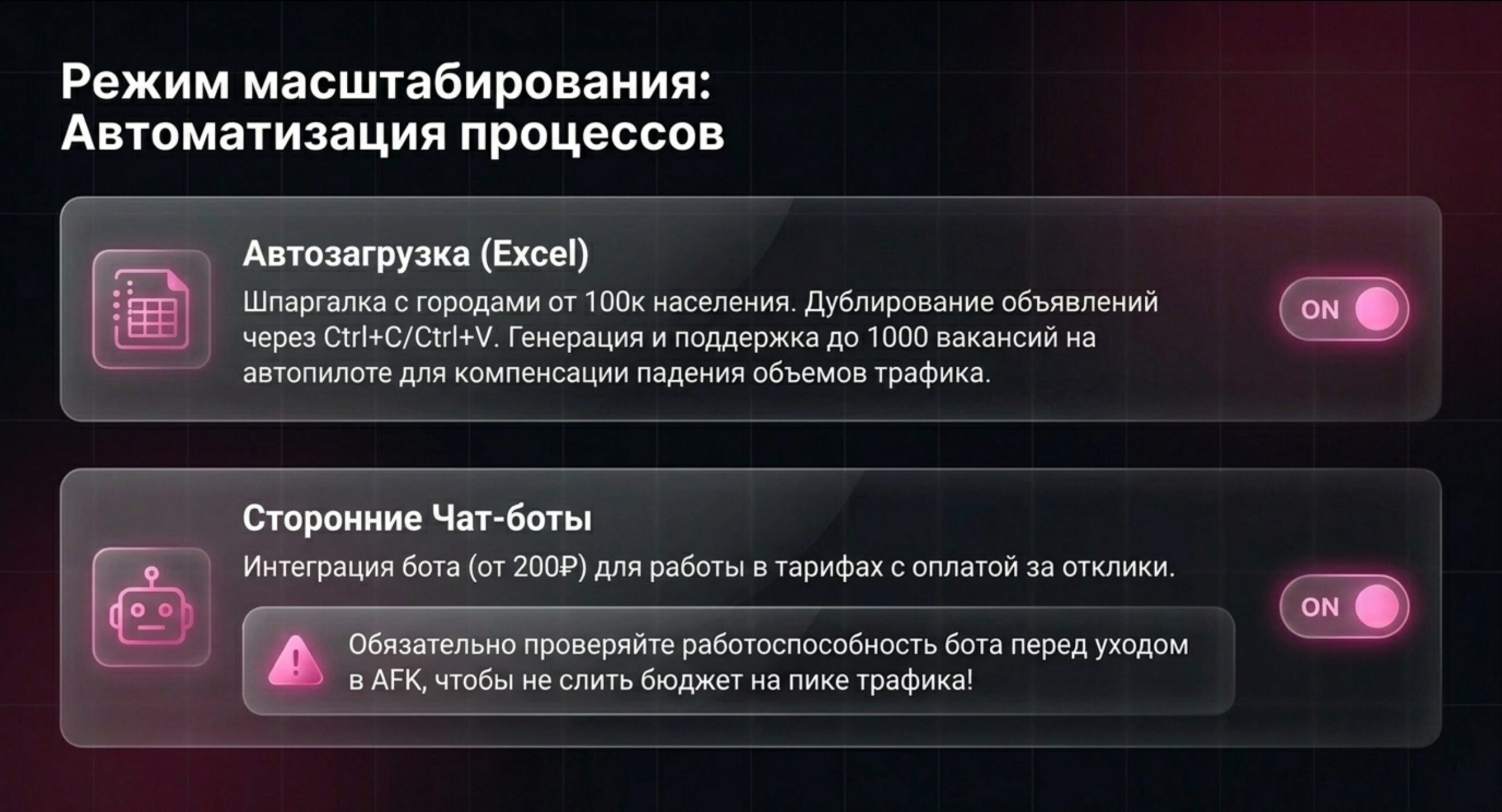 - ✅Скорость реакции: В HR-вертикали лид живет очень недолго. Если ты используешь чат-ботов для первичной обработки, всегда проверяй их работоспособность. Кирилл однажды слил бюджет, потому что бот «упал» в пик трафика, пока он был в отпуске. Всегда делай «тестовую закупку» своего же лида перед основным заливом.