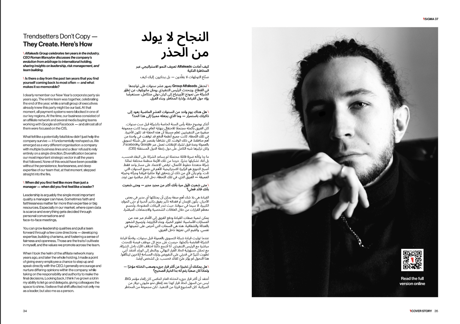 CEO Alfaleads Group Роман Мануйлов стал лицом обложки 37-го выпуска SiGMA Magazine! Это не просто показатель международного признания Романа и компании, но и повод посмотреть на 10 лет развития личности и компании.