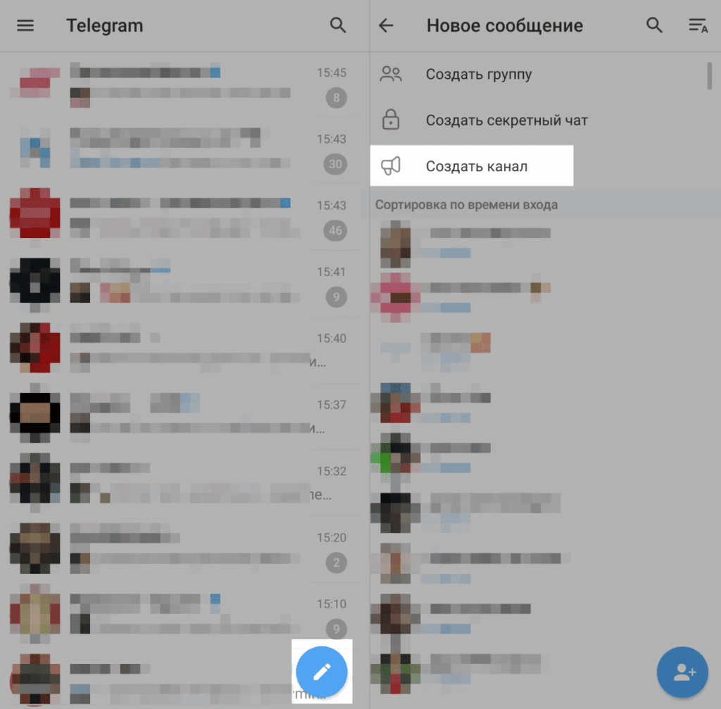 Откройте Telegram. В списке чатов и каналов нажмите на значок карандаша а затем выберите пункт «Создать канал».