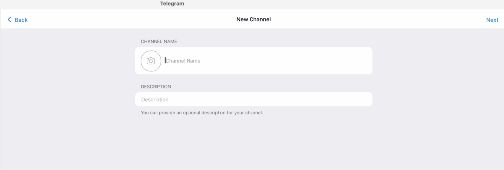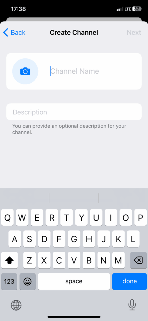 Как и при создании канала на айфоне, укажите название канала, добавьте описание, загрузите аватар. Описание и фото не обязательно размещать сразу, но вот название нужно обязательно указать. Если идей пока нет, назовите канал как угодно (название потом можно будет поменять).