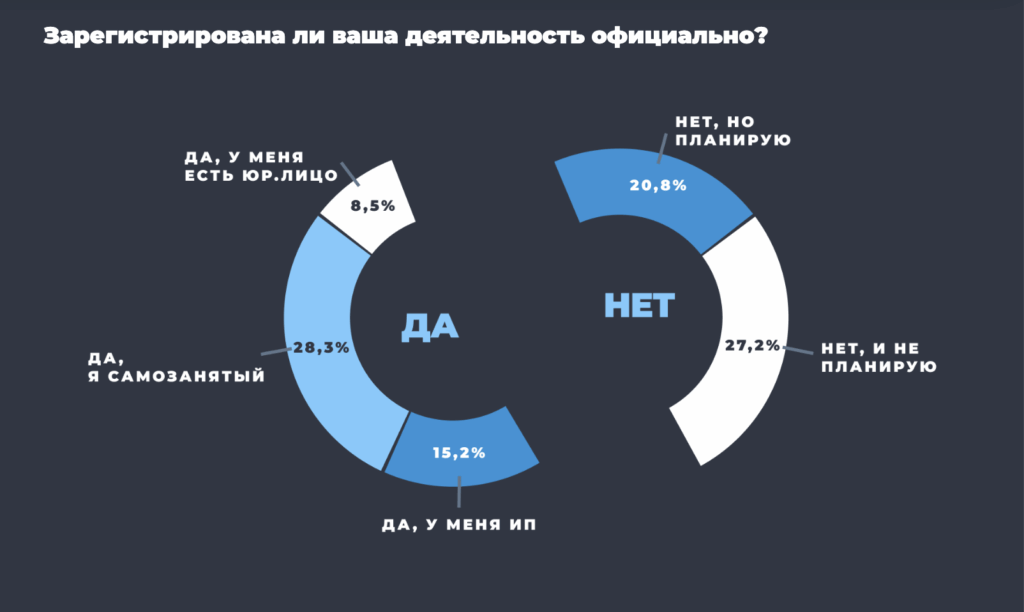 По данным TgStat, распределение авторов по доходам очень широкое: 40% получают <5 000 рублей в месяц, около 17% — больше 90 000 рублей, и порядка 4% — свыше 500 000 рублей. Статистика устаревающая, но она дает общее представление — возможны как небольшие сумасшедшие успехи, так и скромные доходы.