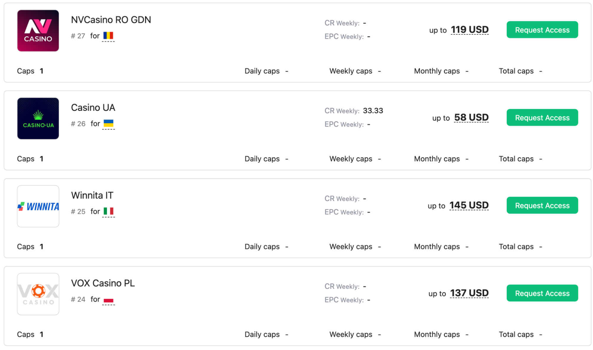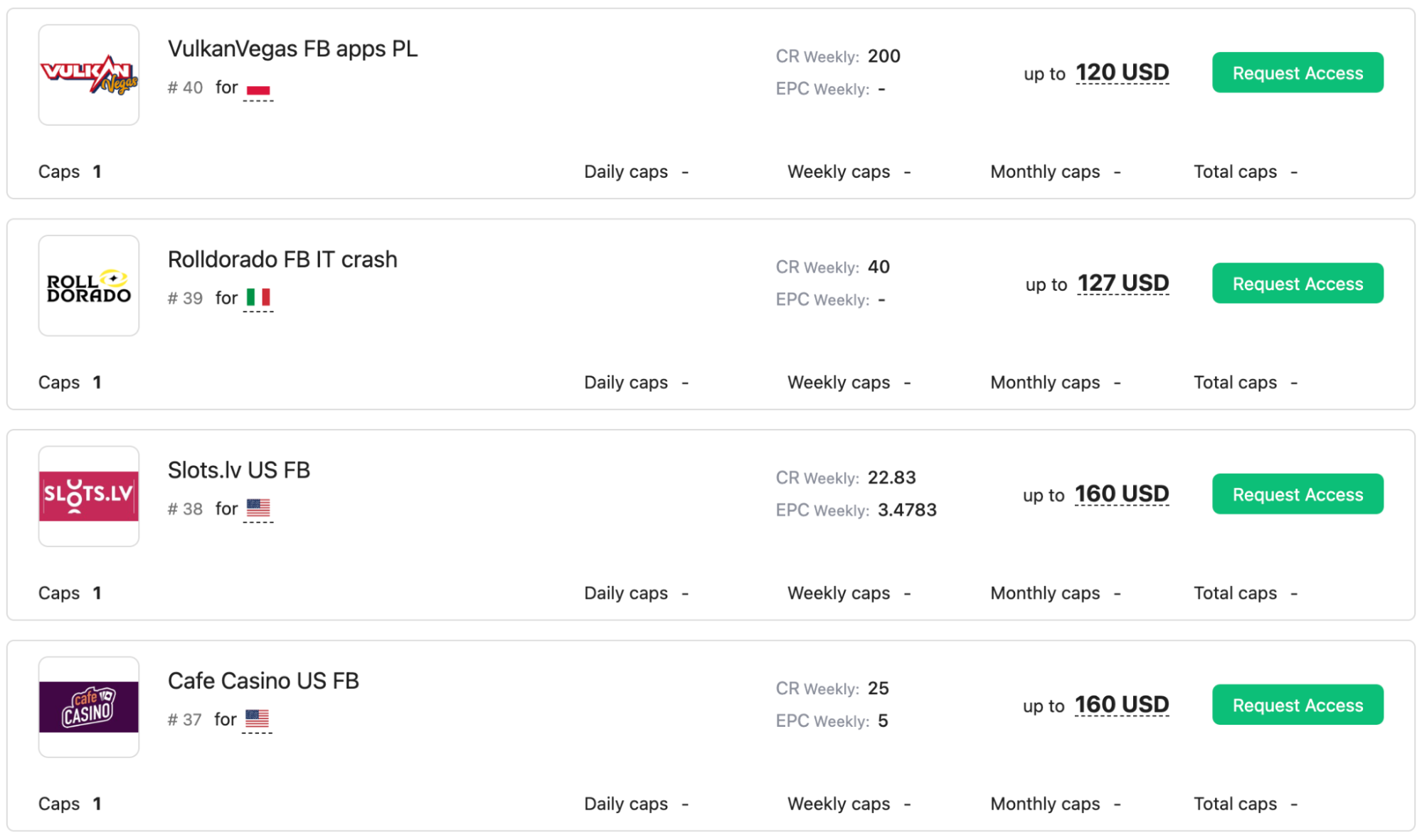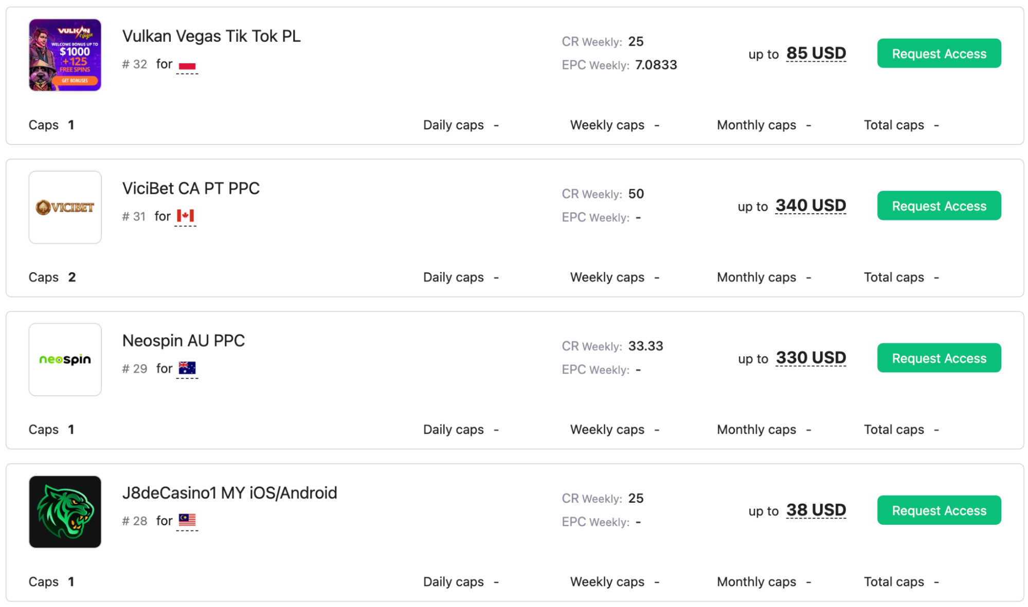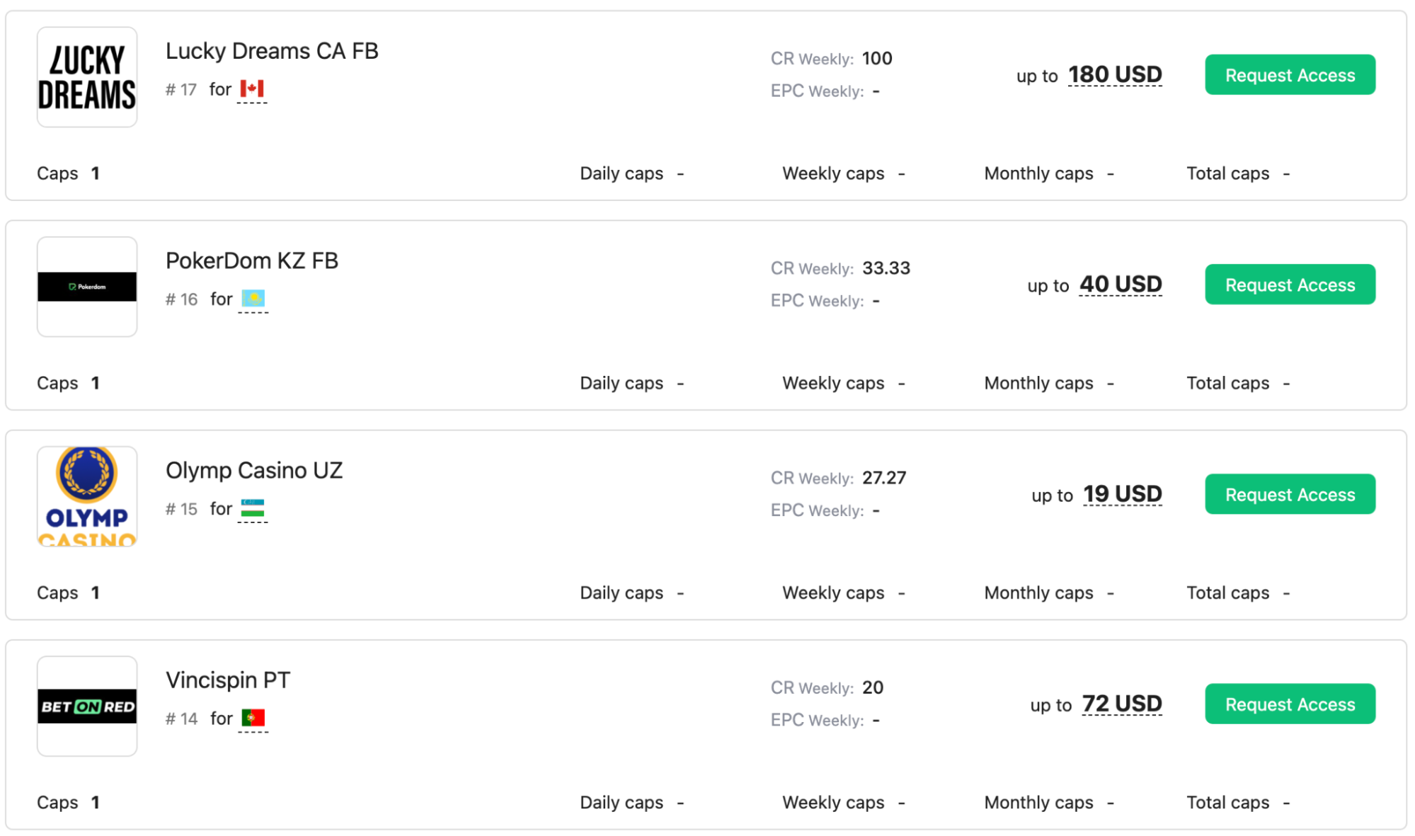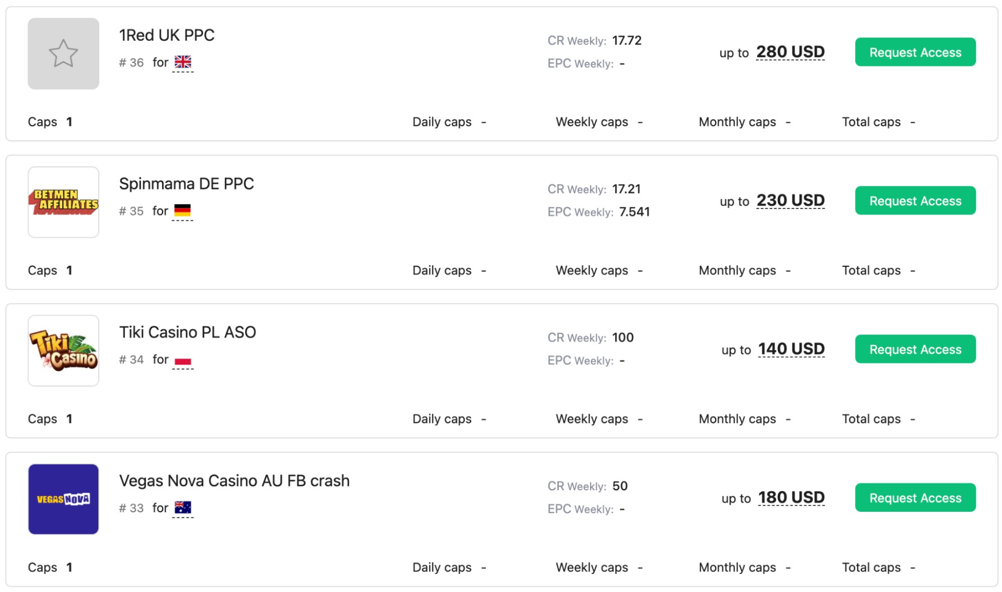 - Больше офферов от проверенных рекламодателей, особенно с белыми локальными лицензиями — чтобы трафик жил дольше, а партнер чувствовал себя спокойно.