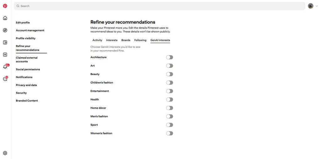С октября 2025 года пользователи могут скрывать пины, созданные с помощью ИИ. Несмотря на это, в целом платформа лояльна к сгенерированному контенту.
