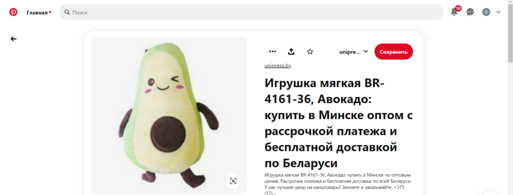Пример расширенного пина товара с ценой и коротким описанием