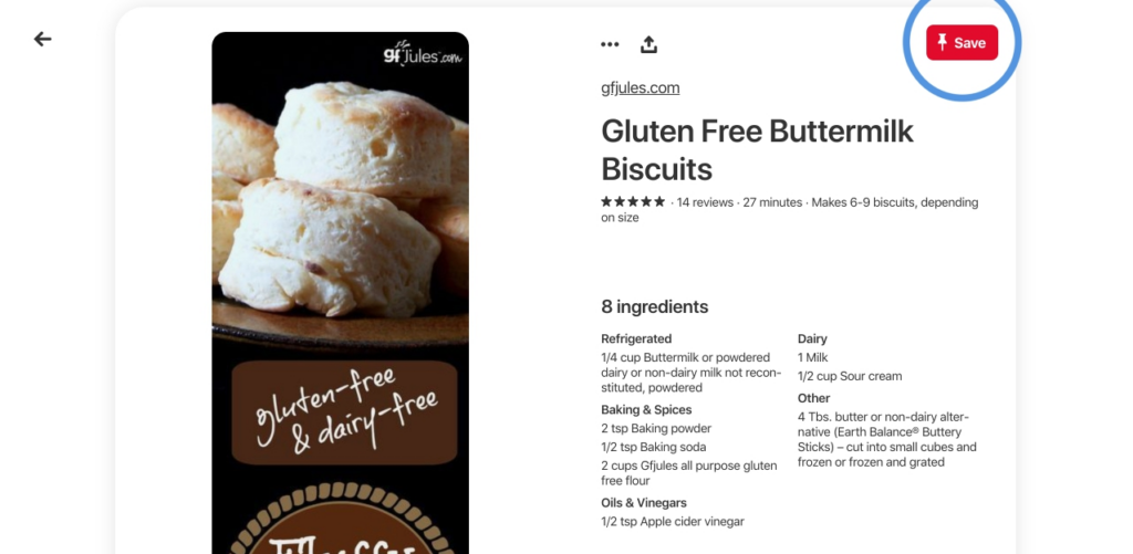 - Пины-рецепты структурируют список ингредиентов и время приготовления блюда.