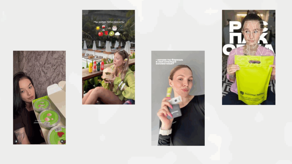 - Регулярные Stories/Reels для поддержания присутствия. Короткие динамичные форматы поддерживают визуальный контакт с аудиторией, напоминают о бренде и стимулируют возвращение на сайт или лендинг.