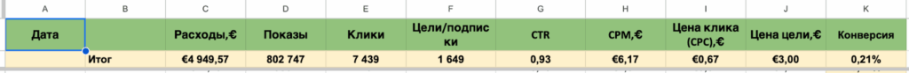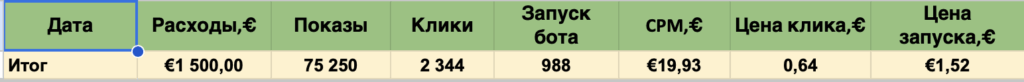 Средняя стоимость качественного подписчика в нашей сфере будет варьироваться и зависеть от того, что мы продвигаем. Партнерки и сервисы будут дороже, блоги — дешевле. Средняя стоимость за подписчика — 3–4 евро. Средний дневной бюджет у вас будет в районе 30–50 евро.