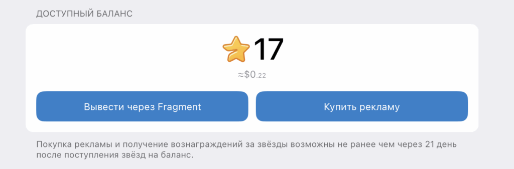 Минус, о котором вы должны знать: пополнение кабинета осуществляется в течении 21 дня. Пополняется он старсами — накручиваете на канал старсы, выводите их в кабинет и запускаете рекламу: