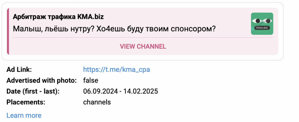 Для рекламных кампаний в сфере арбитража лучше не выбирать продвижение на каналах партнерок или конкурентов, т. к. по ощущениям там рекламируются 99% рекламодателей из нашей сферы. Отсюда высокая цена за конечного подписчика.