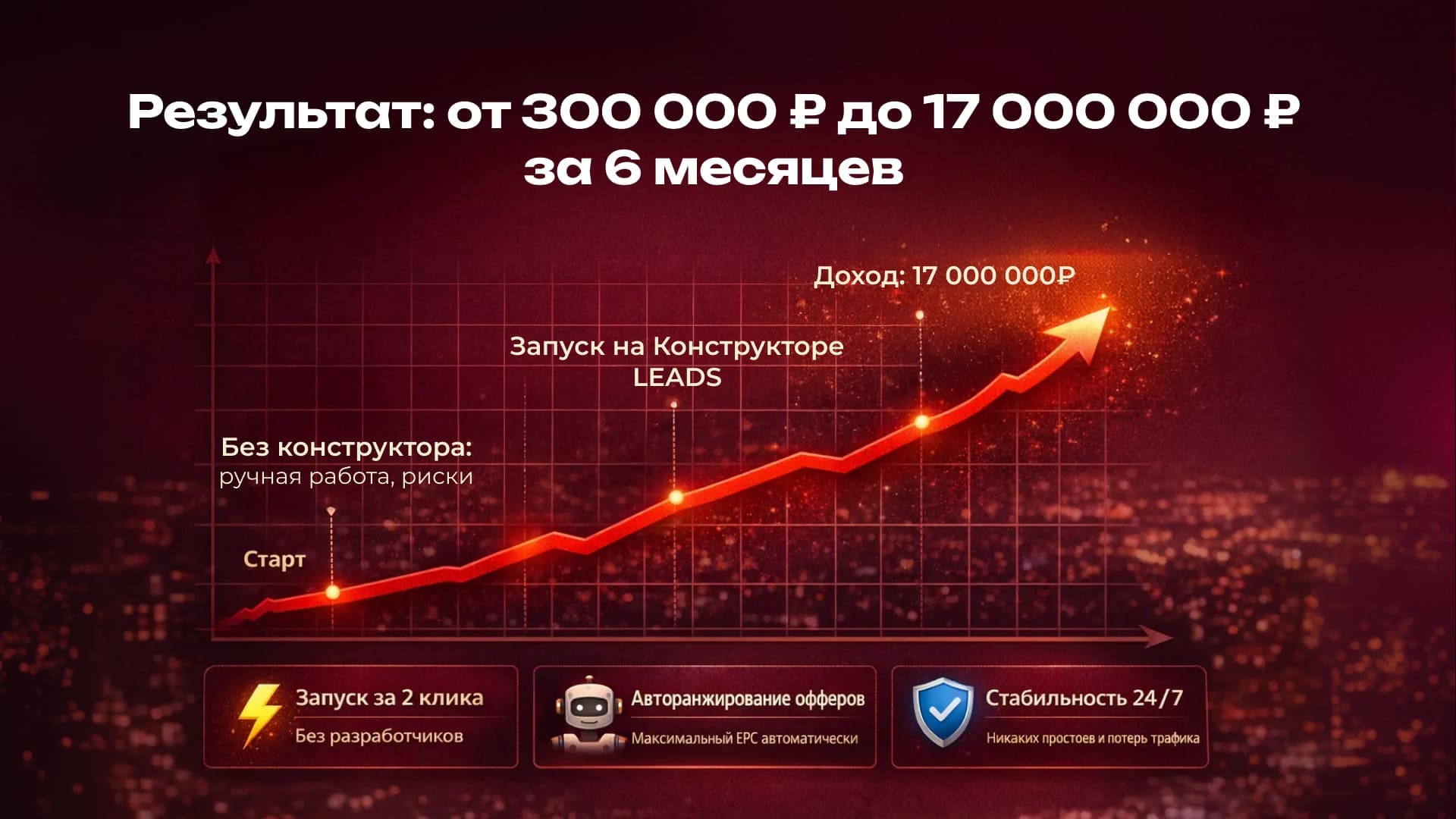 Конструктор LEADS создан, чтобы снять эти ограничения. Мы даем не просто инструмент для сборки, а законченное рабочее место вебмастера, где есть всё необходимое для стабильного заработка и масштабирования.