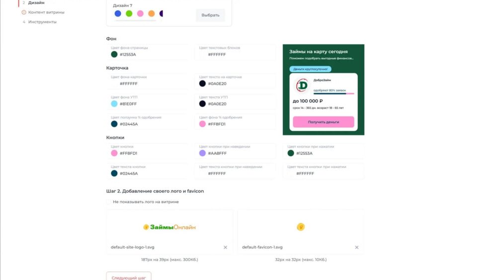 - Глубокая настройка внешнего вида: Полный контроль над цветовой схемой, шрифтами, логотипами и фавиконами. Витрина будет выглядеть как ваша собственная разработка.