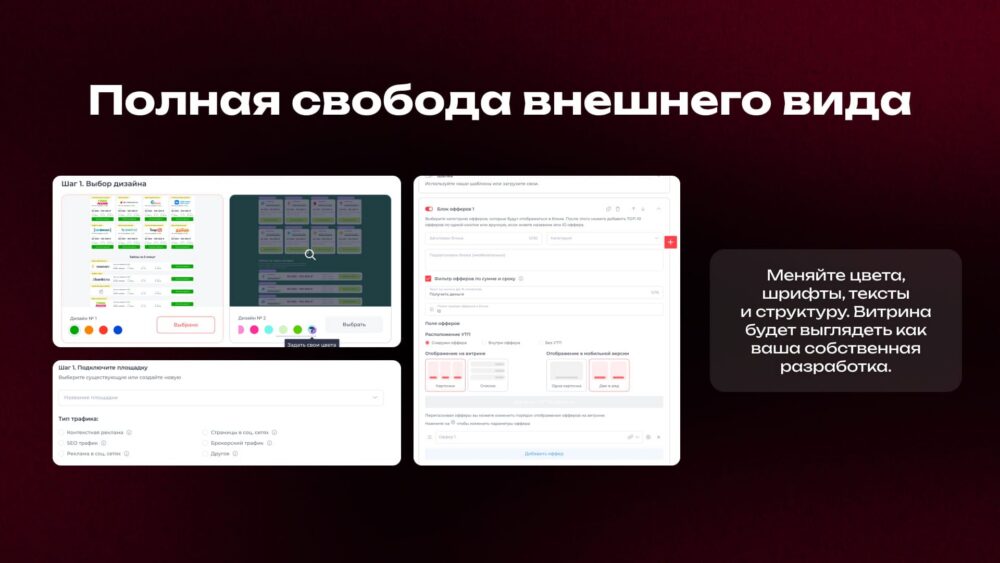 Наш Конструктор витрин — это не только полная свобода в кастомизации ваших страниц, но и мощная система авторанжирования офферов.