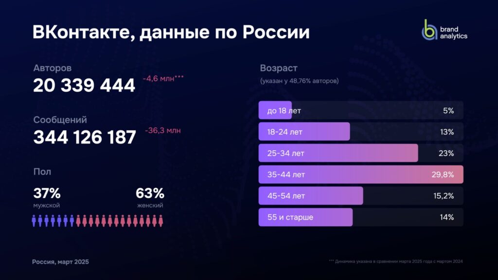 В компании регулярно проводят исследования соцсетей и СМИ. В отчете «Социальные сети в России» приведены данные за март 2025 года. В исследовании представлены суммарные данные по активной аудитории в social media России.