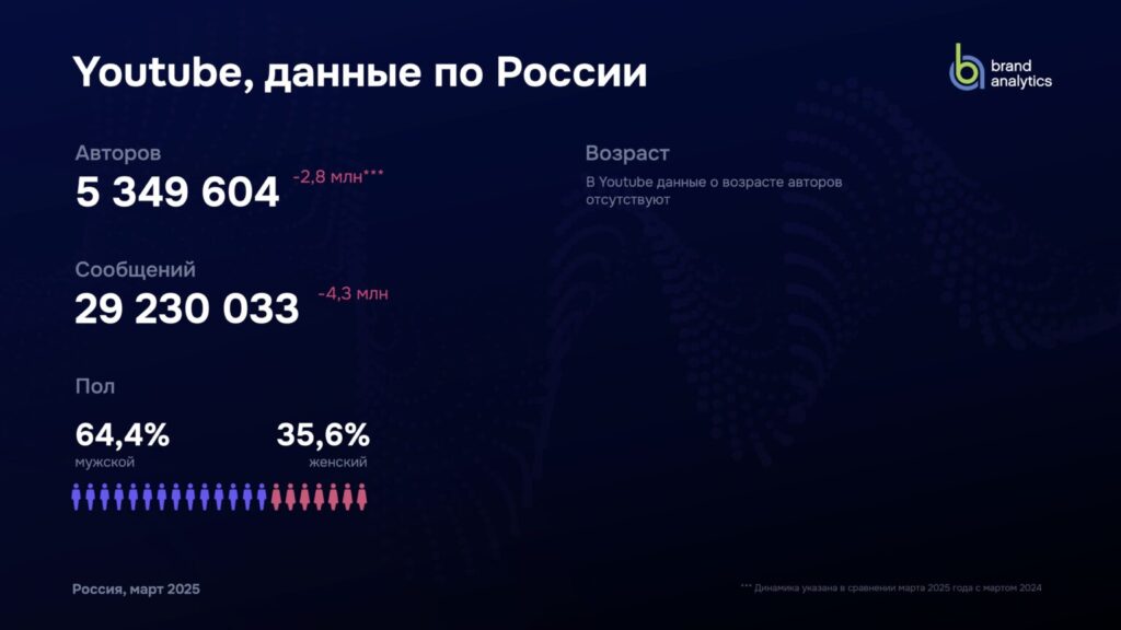 «Instagram считается самой женской площадкой, Youtube и X — самыми мужскими. Остальные примерно в соотношении 60% на 40%» — директор по стратегическим коммуникациям Brand Analytics Василий Черный для Tass