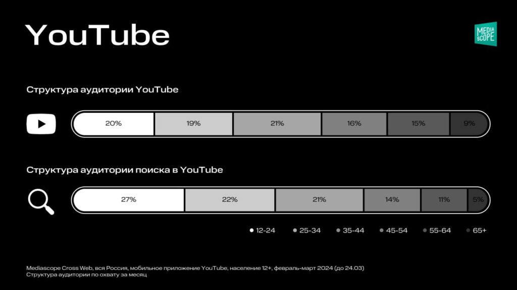 По данным Mediascope, активная аудитория — от 12 до 44 лет: