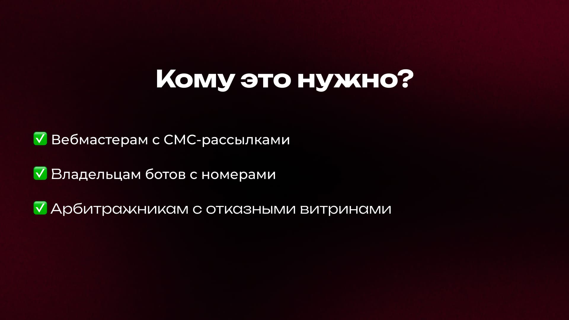 - Те, кто собирает номера в боте. Бот насобирал контактов, вы интегрируете Чекер в воронку и перед отправкой на оффер проверяете — новый человек или уже был.