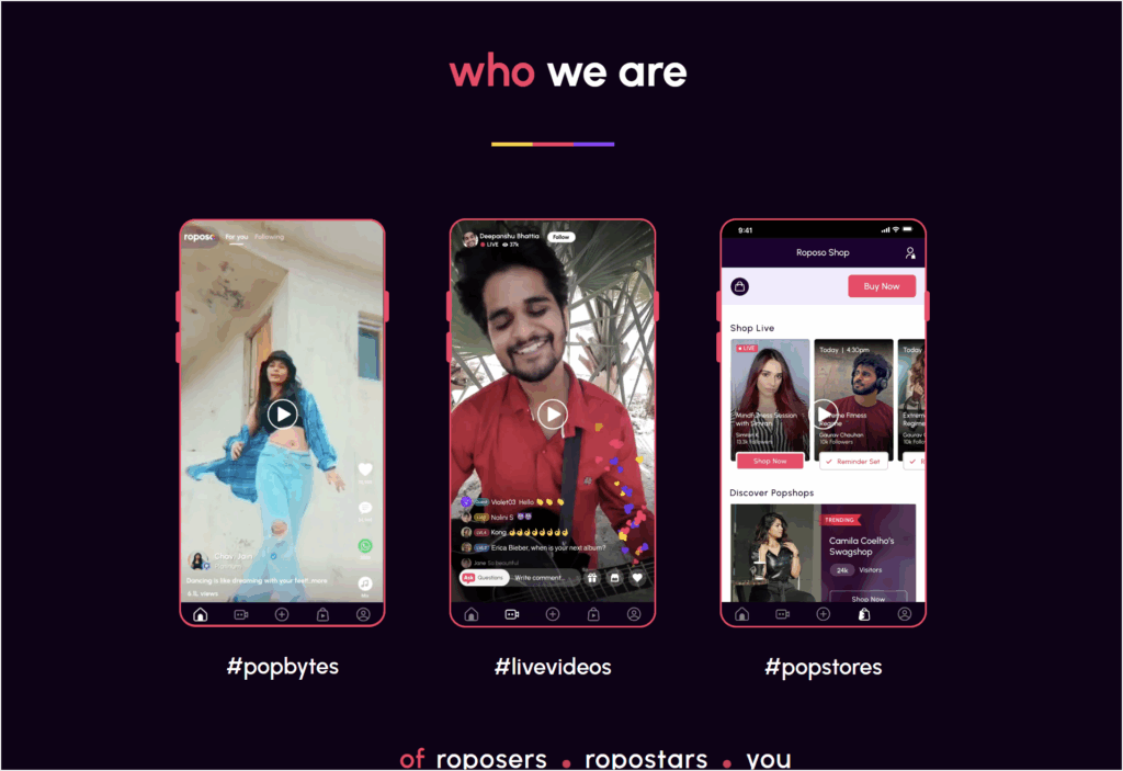 Roposo — соцсеть для коротких видео, запущенная в Индии на волне блокировки TikTok. С тех пор платформа набрала миллионы пользователей и стала популярной не только в Индии, но и в Индонезии, Бангладеш и других азиатских странах.