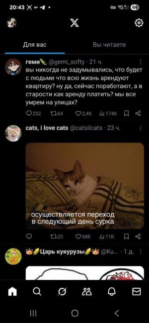 Для замены TikTok в X сделали раздел с короткими вертикальными видеороликами. Такая опция появилась у пользователей из США в начале 2025 года. Еще один раздел находится на панели пользователя внизу.