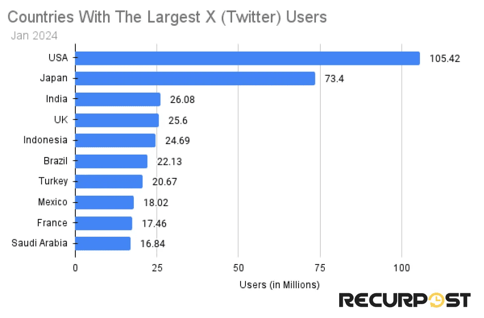 Больше всего пользователей X живут в США, что вполне логично, учитывая, что Twitter был основан именно в Америке.