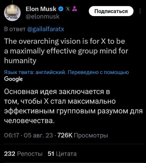 Также Маск в своем посте описывал общую цель X — стать «групповым разумом» для всего человечества, подразумевая внедрение ИИ-инструментов, платежных систем и коммуникаций.