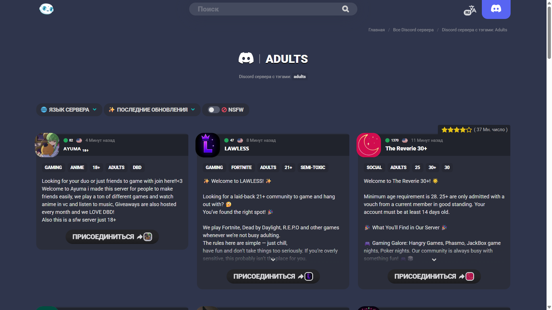 Собственные Discord-серверы. Можно создавать Discord-серверы или Telegram-группы, чтобы общаться с целевой аудиторией и размещать реферальные ссылки. Сервер делают общедоступным с ограничением 18+ — его могут найти в поиске. Публикуют бесплатный контент, ведут обсуждения, дают ссылки на платные офферы.