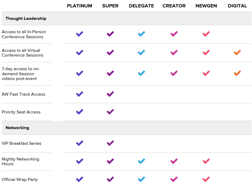 | Platinum Delegate — VIP-доступ на все мероприятия и вечеринки, серия VIP-завтраков, приоритетный доступ, бронирование столика для переговоров | ||