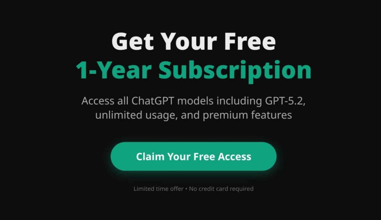 Можно получить подписку ChatGPT на 1 год меньше чем за 5 минут.