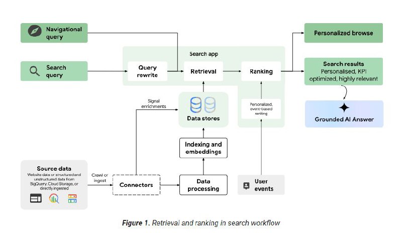 Согласно официальной доке Vertex & Cloud, подход Гугла к выдаче результатов — это двухфазный процесс: сначала Retrieval (сбор широкого пула потенциально релевантных документов), а затем Ranking (ранжирование этого сабсета для финальной презентации).