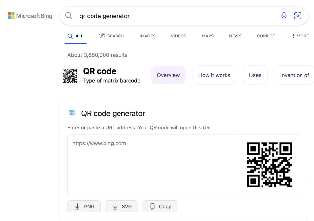 Знаете ли вы, что в Bing можно сгенерировать QR-код для любого URL-адреса?